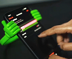 Designed with a thumbs-up shape which universally "hugs" most phones, tablets, E-readers in a fun & creative way.
